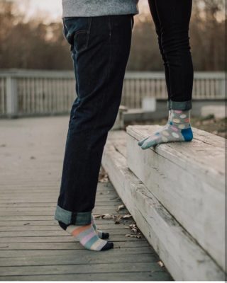 Bei Indoor Fotos ist es die Gemütlichkeit die das Bild vermittelt. Bei Outdoor macht es der starke Kontrast. Zu Hause ziehst du sowieso deine Schuhe aus. Draußen in der Natur oder mitten in der Stadt ist es eher ungewöhnlich. Auf der einen Seite hast du den Asphalt, die Wiese oder unendliche Landschaft als Hintergrund und verbindest das mit etwas gemütlichem und intimen…deinen schönsten Socken. Daher ist diese Variante die etwas spannendere und außergewöhnlichere. Die meisten Menschen würden sich dabei fragen, warum dort jemand in Socken durch den Sand läuft, oder auf einem Felsen klettert und dabei auch noch Fotos macht. Doch wir fragen uns bei der ganzen Sache einfach nur: