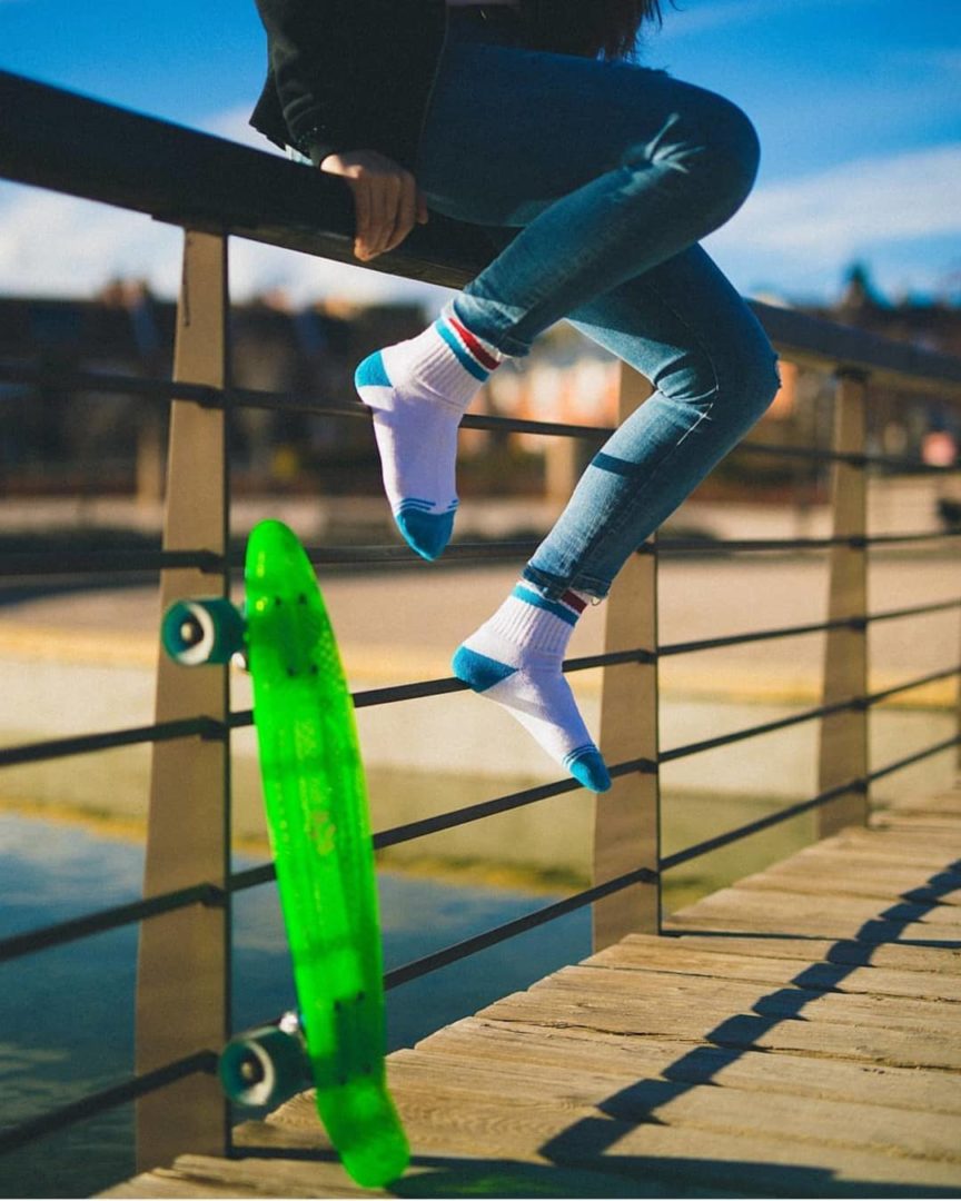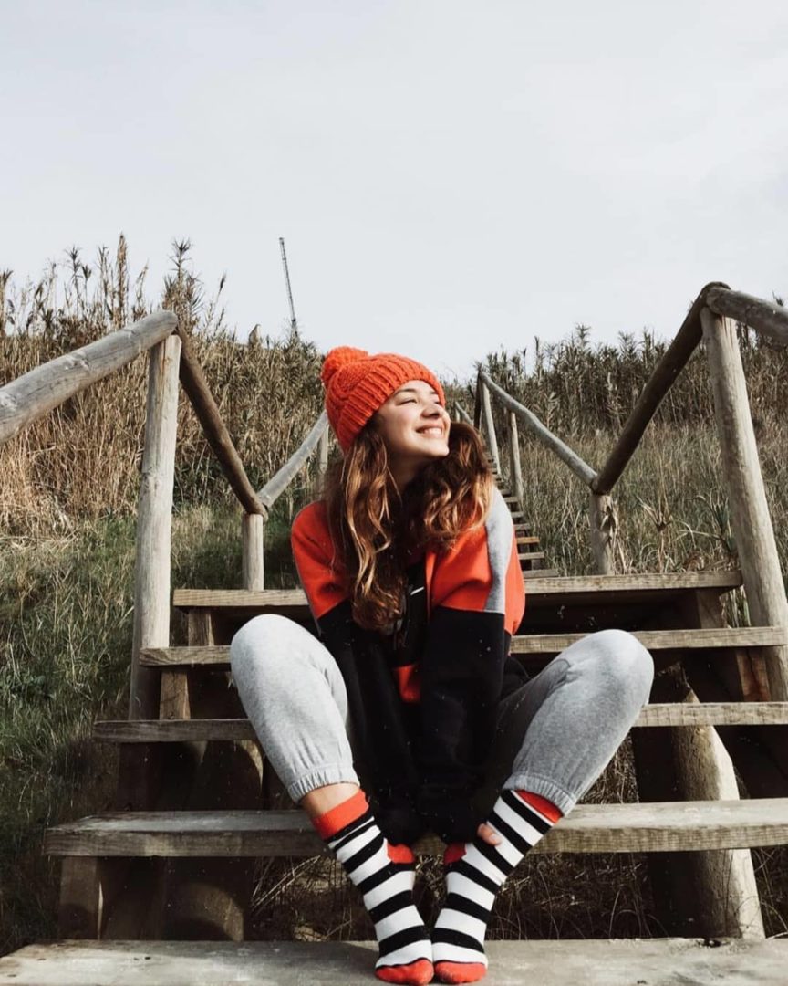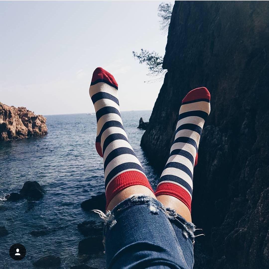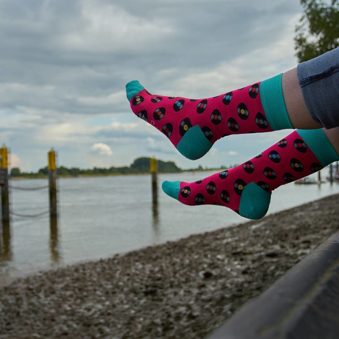 Bei Indoor Fotos ist es die Gemütlichkeit die das Bild vermittelt. Bei Outdoor macht es der starke Kontrast. Zu Hause ziehst du sowieso deine Schuhe aus. Draußen in der Natur oder mitten in der Stadt ist es eher ungewöhnlich. Auf der einen Seite hast du den Asphalt, die Wiese oder unendliche Landschaft als Hintergrund und verbindest das mit etwas gemütlichem und intimen…deinen schönsten Socken. Daher ist diese Variante die etwas spannendere und außergewöhnlichere. Die meisten Menschen würden sich dabei fragen, warum dort jemand in Socken durch den Sand läuft, oder auf einem Felsen klettert und dabei auch noch Fotos macht. Doch wir fragen uns bei der ganzen Sache einfach nur: